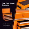 Aukfa Tool Box, 2-in-1 Rolling Tool Chest and Cabinet on Wheels for Garage Workshop, 5-Drawer, Orange