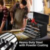 – EASY TO MOVE & PORTABLE – Portable tool box with a comfortable handle offers a good grip that allows you to carry the toolbox organizer easily even when full. 2 steel lockable latches keep your tools fully secured.