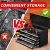 – LOCKABLE – The tool chest comes with a steel safety lock to ensure your drawer don’t stick out on their own when you move the tool box, along with a locking key to keep your tools safe. Drawers can be locked automatically when top lid is closed. This function prevent drawers from slipping out when being carried and for more effective tool storage.