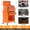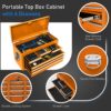 – EASY MOVING & SECURE STORING – locking our general tool cart can be easily moved and stored, because there are 4 universal casters, 2 of which are braked. Also, the top box with 2 handles, easy to take and lift, and the bottom tool cabinet with hand bars, which help you to move forward. More amazing, the top box can be stored in the bottom cabinet, saving your space.