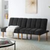 Aukfa Upholstered Futon Convertible Sofa Bed 8 Legs Futon Couch, Corduroy, Black