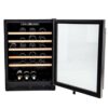 – Holds up to 51 bottles – Temperature range: 40 – 65 F – Soft touch control panel with electronic display – Stainless steel frame – Long life/cool LED interior lighting with ON/OFF switch – Wire shelf with wooden trim – ADA compliant