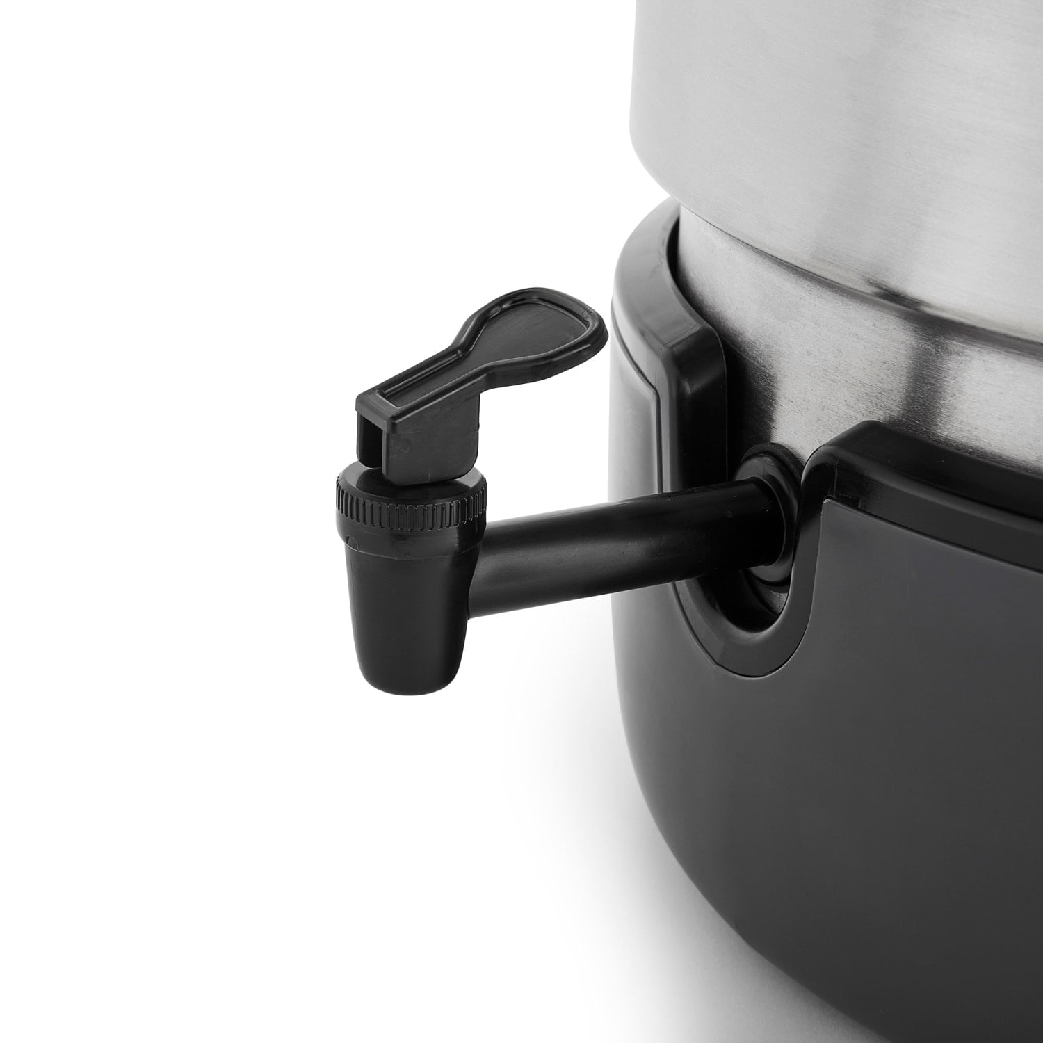 • Includes comfortable handle grips, easy-to-drain spigot, and detachable base with dishwasher-safe components; pot is hand-wash only