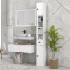 – This narrow bathroom cabinet has a particleboard frame with a coated surface, so it won’t get damaged if water splashes. Moreover, the soft hinges make our slim bathroom cabinet’s doors open and close slowly and smoothly.