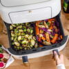 • Cook 2 different foods at once using the individual 4.5qt capacity cooking zones or remove the basket divider to cook 1 larger meal using the full 9qt basket
