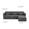 – Includes left wedge, armless chair, right wedge, ottoman and 3 small gray accent pillows