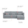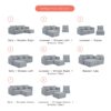 – Includes left wedge, armless chair, right wedge, ottoman and 3 small gray accent pillows