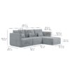 - Includes left wedge, armless chair, right wedge, ottoman and 3 small gray accent pillows