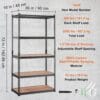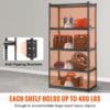 Transform your cluttered garage into a neat and organized space with our metal shelf rack. With a load capacity of 400 lbs per shelf and 2000 lbs in total, it ensures ample storage for all your items.