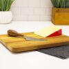 – 9″ Soft Cheese Knife, 8.25″ Hard Cheese Knife, 11″ x 9″ Cutting board. 8″ x 6″ Cutting Board