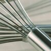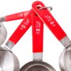 – 3x Stainless steel whisks, 3x silicone spatulas with wooden handles and stainless steel measuring cups with red PP covered handles.