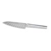 – Product dimensions: Blade Length: 7″ Santoku knife with holes, 5″ Santoku knife grooved, 4 1/2″ Santoku knife, 7″ x 3 1/2″ Cleaver, 8″ 3 in 1 sharpener.