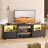 – TV Stand with LED Lights: The entertainment center TV stand has 7 main colors and 22 dynamic modes LED lights system. The included remote control allows for easy customization of colors, adding a vibrant ambiance and enhancing the visual appeal of your living room.
