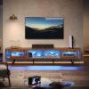 – [LED TV Stand with Sliding Glass Door]: Bestier LED TV stand, featuring sliding glass doors, combines elegance and practicality for storage and display. The transparent doors, coupled with built-in LED lights, enhance the aesthetic appeal of the stand. The LED lights offer 7 colors and 22 dynamic modes, allowing you to create a mesmerizing ambiance that suits your mood. These features not only add a captivating touch to the entertainment center but also personalize your leisure time.