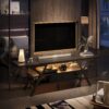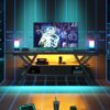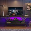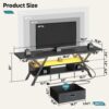 Bestier gaming TV stand with power outlets has a unique Y-shape design, which is not only looks great but also provides ample space to fit all your gaming equipment. This entertainment center comes in 2 stylish colors – carbon fiber, and rustic – and has LED lights to enhance your gaming experience. It can accommodate most TVs on the market and has enough space to hold your gaming devices, consoles, and speakers. Crafted with a combination of iron, wood, LED light, and non-woven fabric, this 75 inch TV stand for TVs is both durable and sturdy, ensuring it will last for years to come. With its multi-element combination, practical features, and stylish design, the television stand for up to 75 inch TVs is the perfect addition to any gaming room.
