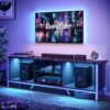 – Immersive Entertainment Experience: This TV stand features LED lights with 7 primary colors and 22 dynamic modes, creating a captivating ambiance for your living room, gaming room, or bedroom. The detachable glass shelves enhance the light effects, making it perfect for special occasions.