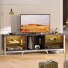 – Flexible and Personalized Storage: This modern TV stand features two sturdy glass shelves and a spacious cabinet, offering diverse storage options. You can adjust the shelves according to your needs, making it ideal for storing various items.