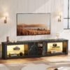 Bestier led TV stand is crafted from high-quality P2 particle board with a black marble finish. It’s durable and designed for long-term use. Features four open compartments, the gaming entertainment center offering ample space for books, magazines, CDs, gaming devices, and other entertainment essentials.Tempered glass shelves has three adjustable height options for personalized storage and organization. An enclosed cabinet provides storage for private items.The media console table includes a LED light system with 7 main colors and 22 dynamic modes, enhancing your movie-watching or gaming experience. Including cord management to keep electronic wires organized. Suitable for use in your bedroom, living room, gaming room, family room or theater and fits 60, 65, 70, 75, 80, or 85 Inch TV screen.