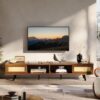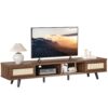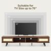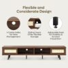 – Rattan TV Stand: This TV stand blends bohemian and mid-century modern styles, featuring moisture-proof and ventilated rattan doors. And the rattan details add a unique and artisanal touch to your home. Measuring 70″L and 15.6″W, this stand is designed to accommodate TVs up to 75 inches.