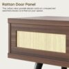 Bestier Rattan TV Stand for TVs up to 75 , Mid Century Modern TV Stand with Sliding Doors, Entertainment Center for Living Room in Walnut