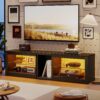 The Bestier 63-inch TV stand comes with an adjustable LED light system, featuring 7 main colors and 22 dynamic modes for personalized ambiance. Its tempered glass shelves offers three adjustable height levels, allowing customization to fit your storage needs. With five open compartments, the led entertainment center provides ample space for your PS5, DVD, router, gaming devices, electronics, books, magazines, and more. Crafted from high-quality CARB P2 Wood, this gaming TV stand is durable and stable. Its black marble finish adds a modern touch to your space. Cable management features to keep wires and cables organized.This TV console is suitable for 70, 65, 60, 55 and 50-inch TV screens.