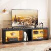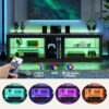– Adjustable LED Lights: This tv stand features attached LED lights in 7 different colors and 22 dynamic settings, creating a lively and entertaining atmosphere for any space. The included remote allows you to conveniently control the lighting to suit your mood and preferences.