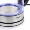 The Better Chef 1.7 Liter 360 Degree Glass Cordless Electric Kettle is ready to help kick start your mornings. This single 7 cup kettle comes in a sleek glass and stainless steel design that will accommodate any kitchen. It boils water faster than a standard stove top or microwave. With its stain-resistant borosilicate glass, cleanup is a breeze. Brighten up your day with the kettle’s blue LED base!