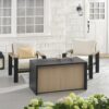 – The fire pit table features a contemporary design with clean lines and a sophisticated color palette, effortlessly enhancing your outdoor decor