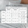- Items Included: 1 flat sheet, 1 fitted sheet, and 2 king pillowcases