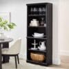 – Spacious shelves hold books, binders, framed photos, collectibles, and more