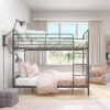 - Sturdy metal mattress slats provide ample support to the twin over twin beds