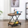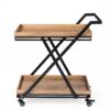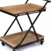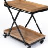 Whether you re looking to host a modern mixology gathering with friends or save counter space by building a breakfast and coffee bar, this multi-purpose Folding Serving Cart is a must-have for any home. The natural wood shelves can be easily detached and used to effortlessly transfer your delights from kitchen to table. The simplistic design pairs nicely with farmhouse, modern and contemporary design styles. When you re done with using it, make use of the built-in wheels to easily move it from room to room. This serving cart features a black metal frame and two natural wood serving trays. This item measures 33.07×30.71×19.29 and 27.06 lbs.
