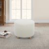 Chic, minimalist and modern, the Faux Sherpa Cream Ottoman in a stylish round shape is covered in a plush piled fabric for a soft, fluffy and comforting texture. Slim tapered solid wood legs in a warm honey finish and matching stitching on the upholstery and reversible cushion create a refined look with designer appeal. The ottoman offers trouble-free, enduring quality with solid hardwood construction and reinforced joints, along with premium high-density foam and a heavy no-sag suspension construction system. Get started relaxing with no delay: assembly is easy and fast by simply attaching the legs to the base of the modern ottoman.