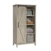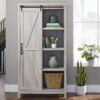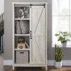Upgrade the storage in your home with this farmhouse storage cabinet from the Better Homes and Gardens Modern Farmhouse collection. Add unique style and optimal storage space to your home with this versatile barn door storage cabinet. Behind its country-inspired sliding barn door is a storage and display area that contains five adjustable shelves that are ideal for stowing away your collection of books and board games or displaying decorative knick-knacks and photos of the family. Display the best, forget the rest this sliding barn door cabinet keeps clutter at bay! Hide what you dont want your guests to see with the barn door cabinet feature. Each shelf is compatible with Better Homes and Gardens 13 bins and baskets so you can organize all your clutter while adding style too. Finished in Rustic White and detailed with stunning hardware, this one-of-a-kind rustic floor cabinet is everything you need and more.