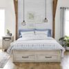 No home is complete without a stylish bedroom. Give your tired bedroom the makeover it’s been dreaming of with this queen platform bed. The farmhouse-inspired bed features convenient under-the-bed storage with two large storage drawers that open and close on smooth metal runners. These handy drawers create an easy access space for you to stow away anything from stacks of t-shirts and your collection of shoes to board games and an extra set of sheets and blankets. You can find room for all your stuff! It accommodates a queen-sized mattress to give you a completed look, whether it is in your master suite or in the guest room down the hallway. It adds cozy style and simplistic beauty no matter where it rests. This stunning bed is just what your bedroom is missing.