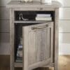 A smart side table gives an upgrade to any living room. This side table with door from the Better Homes & Gardens collection features an open shelf for storage of the remote, the book you are currently reading, and more. This side table with storage features a hidden area behind the door for storing books, magazines, organizing bins, games, and more. Keep everything you need for the living room, guest room, office, or den close by with this small side table with drawer. Use this night stand with drawer in the bedroom for a touch of modern farmhouse styling. This nightstand with storage features two USB ports for charging your phone, tablet, and more. Finished on all sides, this end table will look polished from every angle. A Black finish makes this table a universal addition to any room in your home. Assembled Dimensions: 20.63″ L x 20.63″ W x 26.26″ H