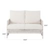 - Outdoor, steel and wicker loveseat with cushions ideal for conversation and relaxation
