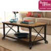 Add an element of country living to your home with the Better Homes & Gardens rustic country coffee table in an antiqued black and weathered pine finish. It is designed to add some rustic charm with an industrial touch to your home, its details lend the charm of a well-loved antique. A mixed material aesthetic combines textured black powder-coated metal framing, bent corner accents, and fixed wheels with a weathered pine finish. This coffee table can also function as a tv stand and will accommodate most 42″ flat-panel TVs weighing up to 70 lbs. Place it in your living room, apartment or dorm room for a striking lift. Make this multi-functional coffee table your at-home, country-inspired retreat, any day of the week. This Better Homes & Gardens coffee table/tv stand measures 41.339 long, 23.504 wide, and 18.504 tall.