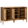 This dining room buffet from the Better Homes and Gardens Springwood collection is the perfect addition to any home entertaining experience. The 1 thick top is durable and can easily withstand daily use. The door fronts of this dining room hutch feature a decorative rattan insert, which adds a touch of tropical elegance. Behind each door of this rattan entertainment credenza are two adjustable shelves, providing ample storage space for many dining room or living room essentials. With solid wood feet and adjustable levelers this dining room cabinet will stand firmly on any surface. Flexible for multi-room placement, this rattan TV stand can hold up to a 65 TV weighing 70 lbs. or less, making it ideal for a variety of spaces. The Light Honey finish adds a warm and inviting feel to any room, making it an ideal choice for blending into any décor. This versatile cabinet will stand ready to perform as a functional piece of furniture or a statement piece for the home.