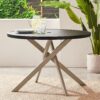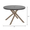 - 40″ round outdoor dining table features decorative legs and a metal embossed tabletop