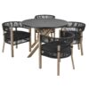 - Set includes 4 outdoor wicker rope dining chairs and a 40″ round dining table