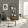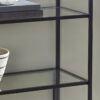Storage that makes a statement. Create a one-of-a-kind look in your home when you add the sophisticated style and modern design of this bookcase from the Better Homes & Gardens Nola collection. This tall bookcase features five open shelves, each with a safety-tempered glass surface that adds an extra pop of style to your home decor. These spacious shelves provide you with the perfect amount of space to display all your favorite decor items like a vase of flowers, your array of knick-knacks, framed photos, and any other of your life’s most prized possessions. These glass shelves also make a great spot to store items like books, plants, and stacks of magazines. Its rounded edges and curved indent design give it a stunningly unique appearance that is sure to grab the attention of your friends and family. Constructed with a sturdy metal frame and finished on all sides in black, this stunning bookcase is everything your home needs and more.