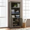 Style and storage all in one. Update the look of your home when you add the rustic-inspired style and functional design of this library bookcase with doors from the Better Homes and Gardens modern farmhouse collection. This library bookcase features three spacious shelves that are perfect for storing and displaying a variety of different items like your collection of novels, decorative plants, work binders, and framed photos of your family. These three shelves have the ability to adjust to different heights to create flexible storage for items of all shapes and sizes. Behind the two framed doors is a hidden storage area that is ideal for stowing away items like organizing bins, magazines, and anything else that you prefer not to be seen. Its charming good looks and versatility make this library a great fit for any room in your home the living room, your office, or the dining room. Finished in rustic gray and detailed with attractive hardware, this stunning library bookcase is just what your home needs.