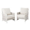 Kick back and relax in comfort and style with the Better Homes & Gardens Paige Outdoor Wicker Stationary Lounge Chairs, Set of 2, White. Featuring a high-back design with a white wicker and plush cushions, the neutral-toned outdoor lounge chairs complement any outdoor furniture and décor. The low maintenance, soft cushions are crafted with solution-dyed, 3M Scotchgard™-treated polyester fabric and weather-resistant fiberfill. A handwoven, weather-resistant, resin wicker perfectly wraps the sturdy, e-coated and powder-coated steel frame, enhancing the all-season durability. Instructions for easy assembly are included. The Paige Outdoor Wicker Stationary Lounge Chairs are part of the Better Homes & Gardens Paige outdoor furniture collection (other items sold separately) and makes a lovely addition to any porch, patio, or deck with its relaxing comfort, reliable strength, and timeless style. Assembly required.
