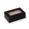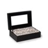 – The crocodile debossed leather case holds a double 9, 55 domino piece set.