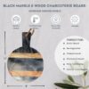 Black Marble and Wood Accent Charcuterie Board with Handle