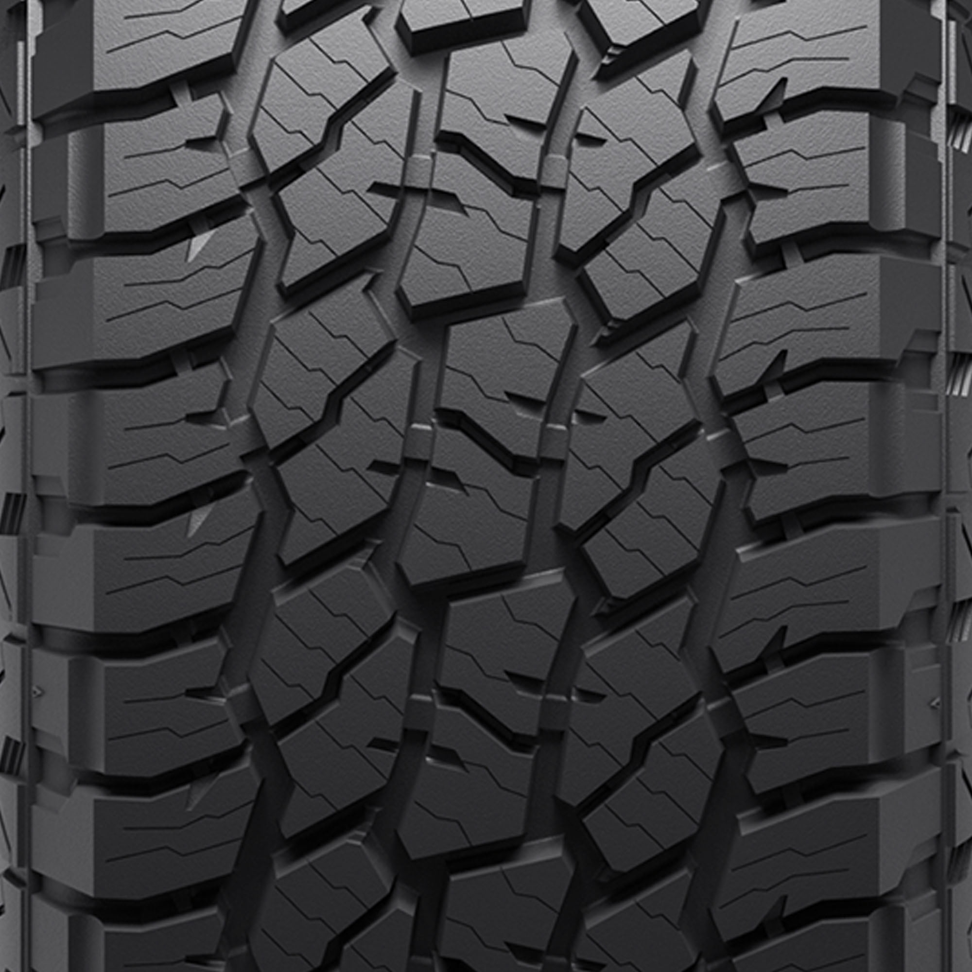 - Aggressive all-terrain tread with deep lugs and staggered shoulder blocks for superior off-road grip