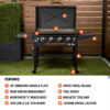 Create delicious outdoor meals on this Blackstone 36” Omnivore Griddle with Hood and Folding Side Shelves. This griddle was designed to make cooking outdoors easier and more efficient. The Omnivore Griddle Plate provides faster preheat and recovery times, more even heating across the griddle top, and less fuel use per cook. With 768 square inches of cooking space and four independently controlled burners, this flat top grill is great for making multiple food items at once. Extra features including a side shelf cutting board, magnetic tool strip, bottle opener, and paper towel holder make it easier to prep, cook, and clean up. Protect your griddle top with the integrated ‘X’ brace hood and fold down the side shelves after use for more compact storage. Enjoy everything from prepping your meal to cleaning up after it when you make your meals on this Blackstone 36” Omnivore Griddle.