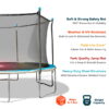 The Bounce Pro 14′ Trampoline with the patented Flash Lite Zone. Steel Flex enclosure system and Flash Light Zone is a great addition to any backyard. The frame is made of high quality galvanized steel tubes to provide durability and stability. The jump mat, spring pad protector and safety enclosure netting are UV resistant and test to over double of the ASTM standard. The long springs provide a smooth, deep bouncing action which kids love. The SteelFlex enclosure system provides extra safety and helps eliminates the sagging net problem.