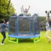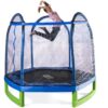 – Bounce Pro My First kid’s trampoline stands at 7′ following assembly